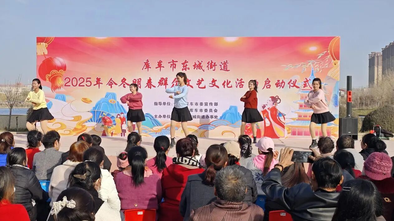 在东湖广场,东城街道2025年今冬明春群众性文艺文化活动启动仪式在灵动的萨玛瓦尔舞中正式拉开序幕。《张灯结彩》以欢快节奏传递冬日暖意,养生操《八段锦》完美融合传统文化与现代健康理念……今冬明春期间,库车市各地广泛开展“我们的中国梦——文化进万家”活动、“我们的节日”主题活动、农村电影公益放映活动、书画进万家活动等,举办群众歌咏、剪纸、诗歌、广场舞、篮球赛等活动,办好村舞、村晚、村歌、村跑、“村BA”等“村字号”文体活动,为基层群众提供展示风采的舞台。截至目前,全市已开展文艺文体活动60余场次,惠及群众1.2万余人次。