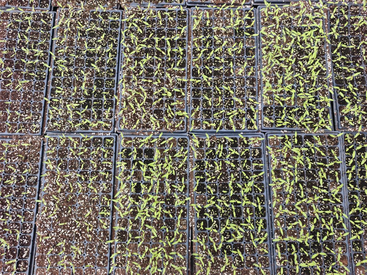 巴楚县阿纳库勒乡干部斯拉依曼·卡迪尔说:“前期培育的辣椒和西红柿已经出苗,长势良好,月底就能移栽了。”