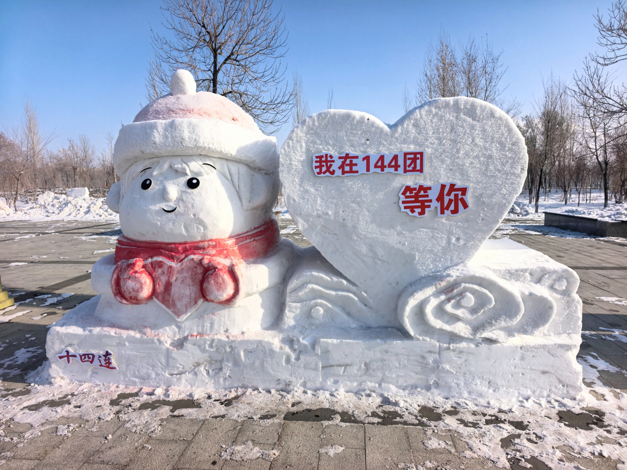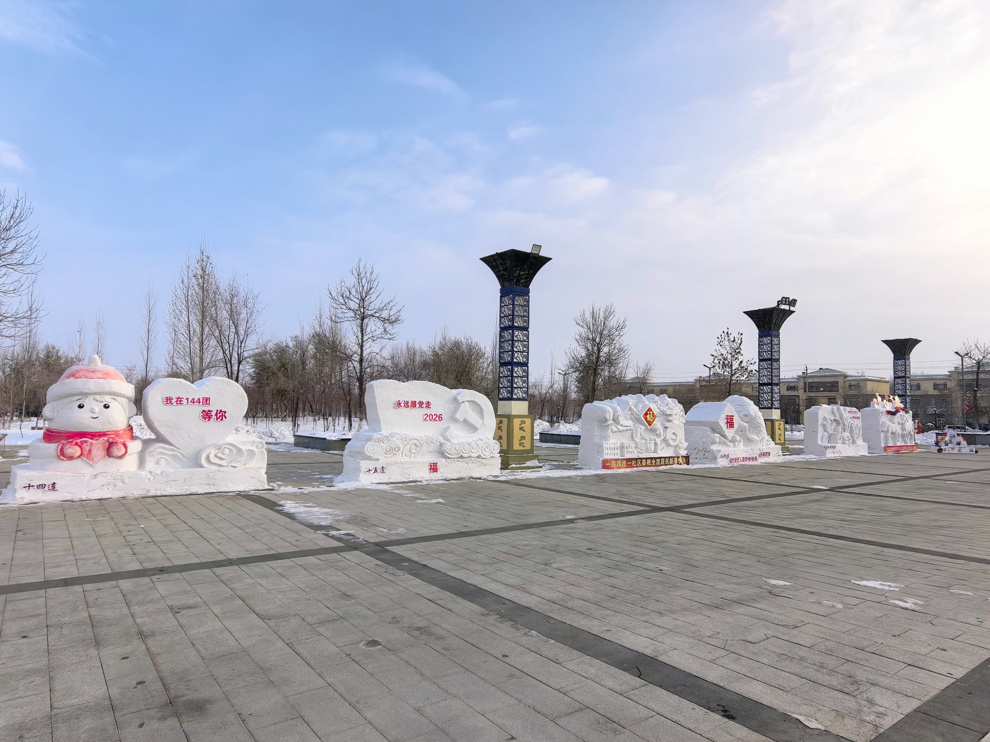 2月2日,新疆生产建设兵团第八师一四四团在人民公园广场举办“驰马迎春·雪韵华章”冰雪雕创意评比大赛,来自全团20个基层单位以雪为媒、以铲为笔,干群携手创作,用匠心雕琢出一件件冬日限定的冰雪艺术精品,共同凝聚全民参与、共建共享冰雪文化之情。