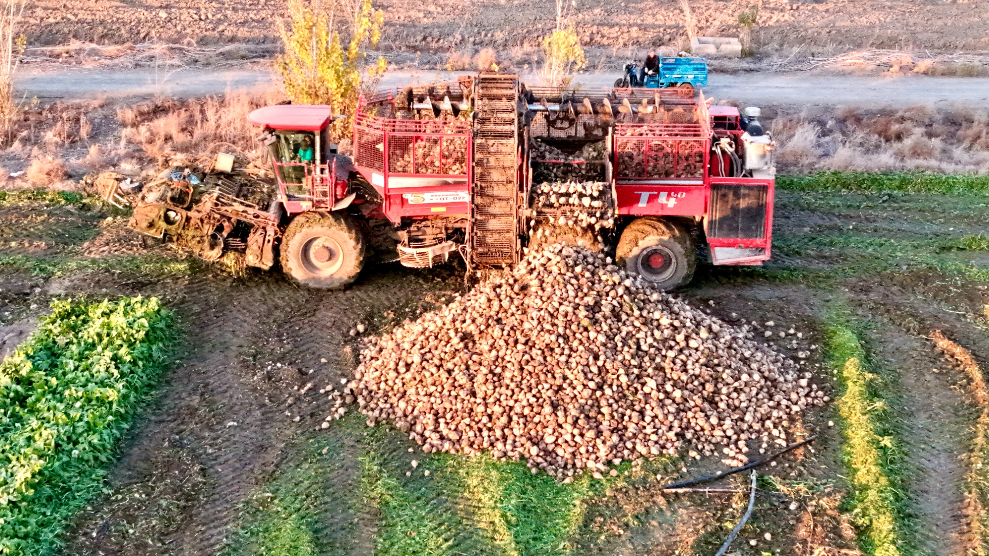 甜菜采挖机采收的甜菜正在卸货 (张鑫源 摄)
