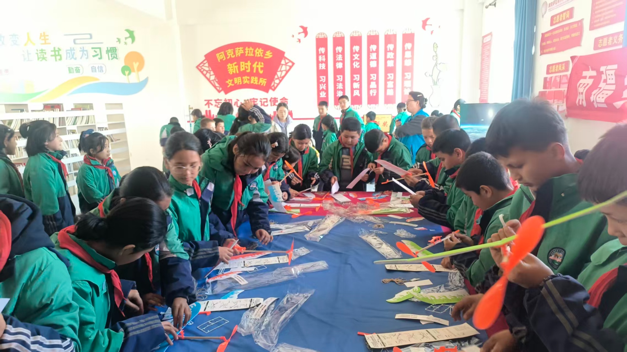 当天下午,科普活动在阿克萨拉依乡接续开展,内容同样丰富多元。手工制作比赛激发学生们的动手创造力,校园安全知识讲解筑牢安全防护意识,“大象鼻涕”“悬浮地球”“空气机关枪”等特色实验,进一步拉近了学生与科学的距离,让大家在欢乐氛围中感受科技的独特魅力。