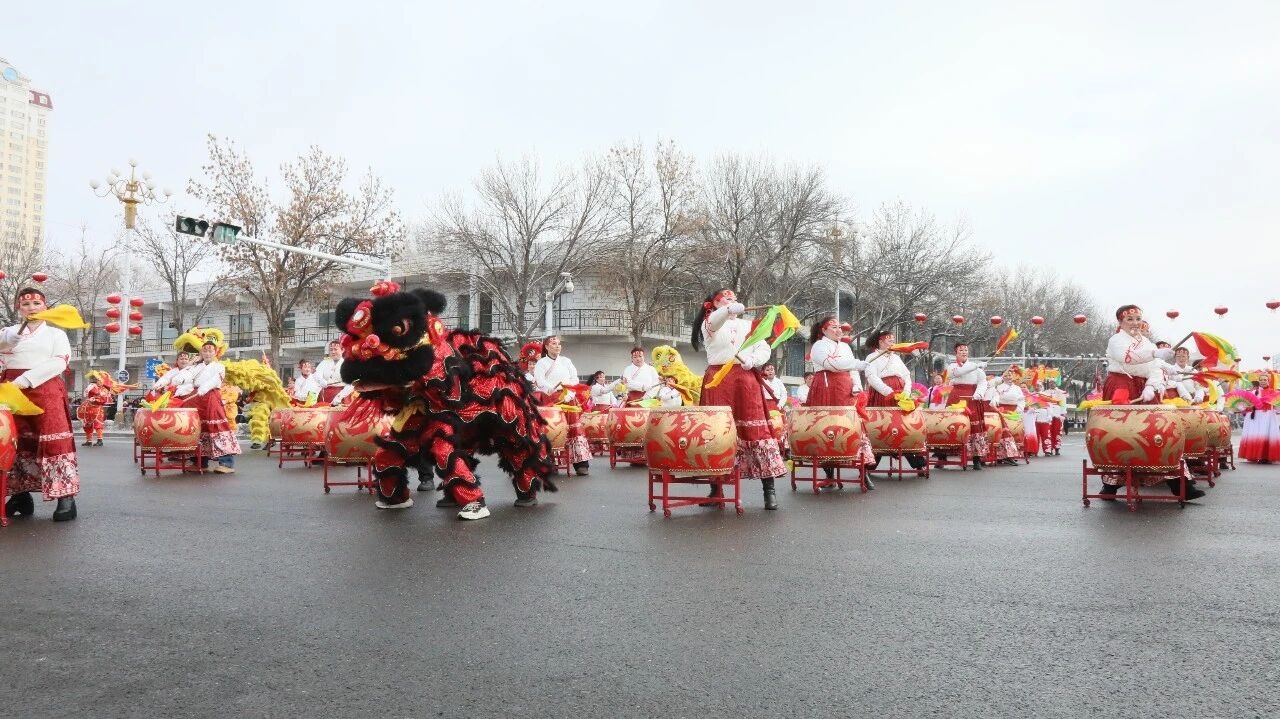 激昂锣鼓震天响,元宵社火启新程。各乡镇(街道)队伍身着盛装、依次登场,阵容整齐、精彩纷呈。威风龙狮腾跃盘旋,骏马造型灵动矫健,现场喝彩声不断;喜庆秧歌彩扇飞扬、红绸漫舞,铿锵腰鼓振奋人心,欢快旋律奏响塔城市各族群众幸福乐章。