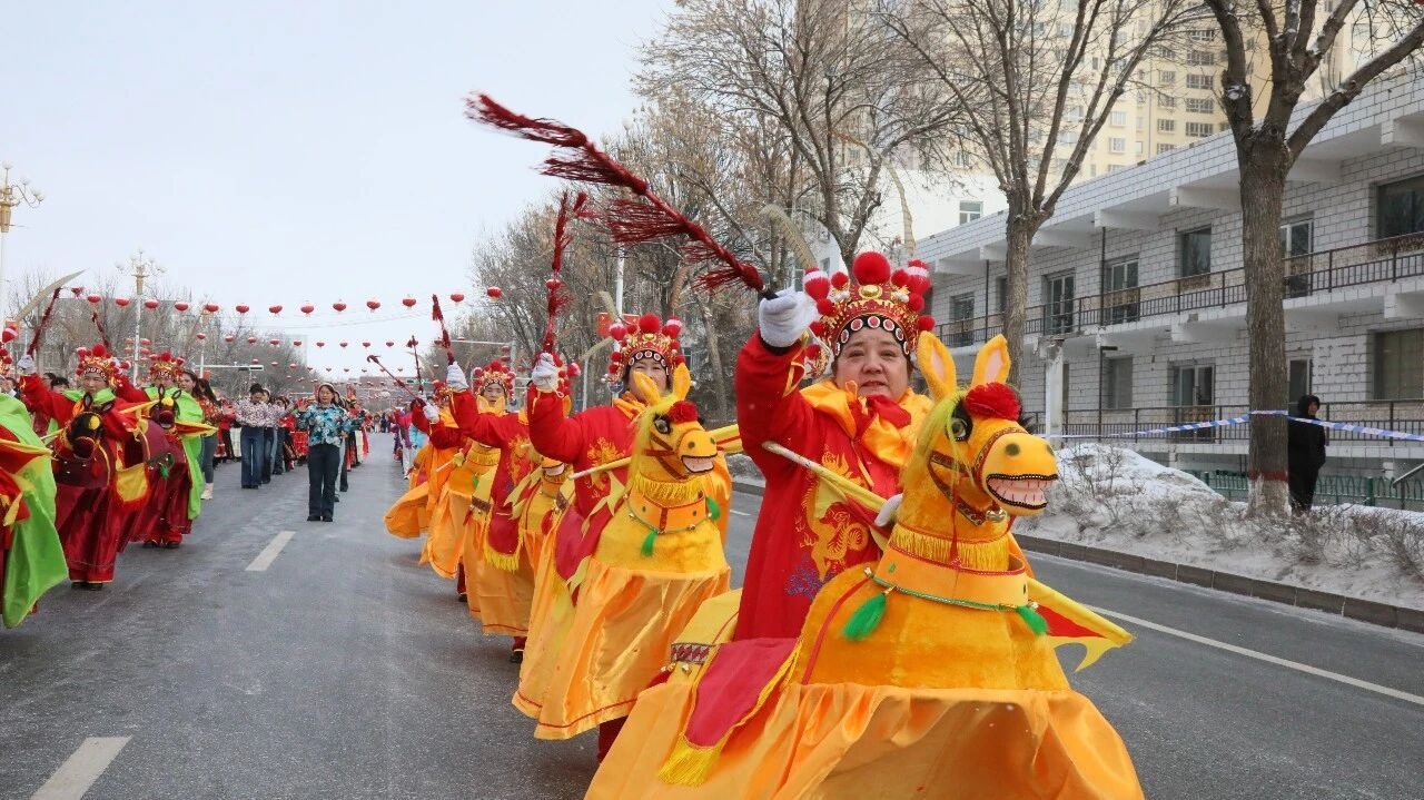 造型精美的主题花车满载吉祥寓意缓缓驶过,瞬间点燃现场观众的热情。各民族演员身着盛装,用曼妙舞姿演绎多彩风情,手风琴方队琴声悠扬,奏响了塔城最动人的城市乐章。恰秀表演抛撒着满满的祝福,英歌舞尽显力与美的震撼,跑马旱船诙谐有趣,汉服巡游如梦似幻。一系列节目轮番登场,传统民俗与时代新风交相辉映,马年元素鲜明、形式新颖,将现场热烈的氛围一次次推向高潮。