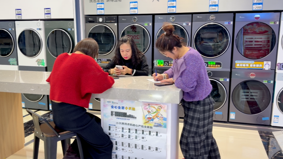 顾客咨询电器以旧换新政策 (李文婕 摄)