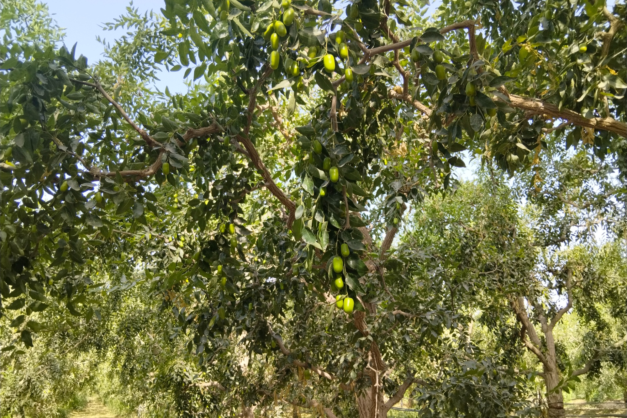 盛夏时节,新疆若羌县23万余亩枣园绿意盎然,枣树枝头挂满一串串“绿宝石”,孕育着丰收的希望。不同于传统枣园里农民忙碌劳作的场景,这里的枣园里鲜少有人影,却处处暗藏“科技玄机”。
