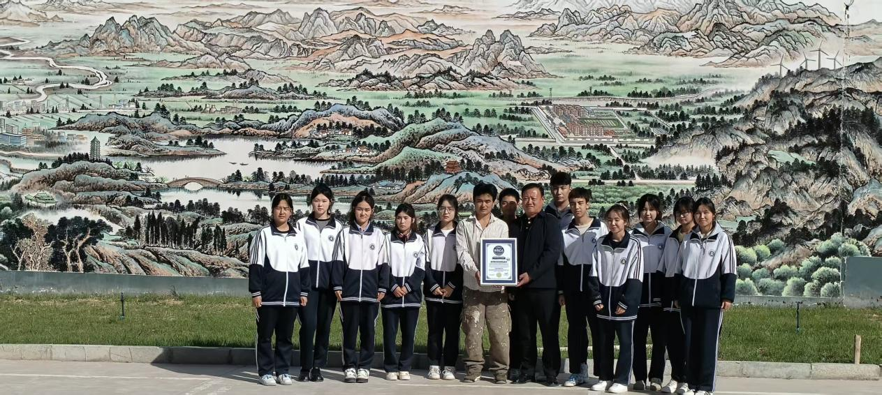 据了解,这幅《大美新疆 祖国大好河山》中国画山水壁画长888米、高5.5米,总面积相当于半个足球场的作品,不仅斩获“世界最长的中国画山水壁画”官方认证,更让这所学校一举站上了世界纪录的舞台。