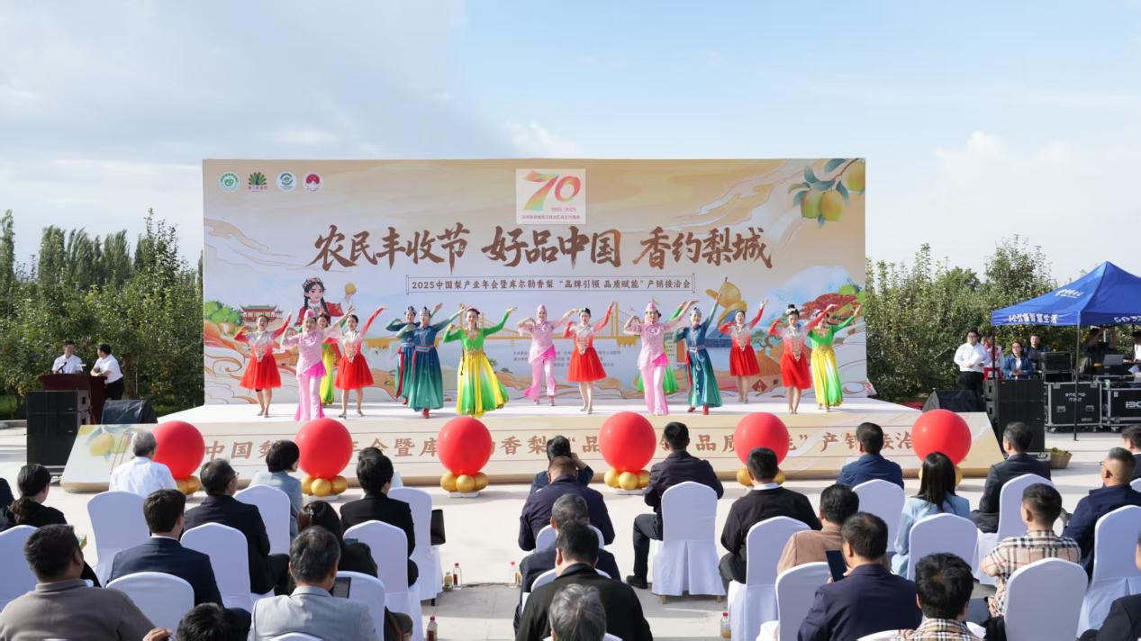9月21日,“好品中国 香约梨城 农民丰收节”2025中国梨产业年会暨库尔勒香梨“品牌引领 品质赋能”产销接洽会开幕式在新疆库尔勒市阿瓦提乡香梨科技文化示范园举行。