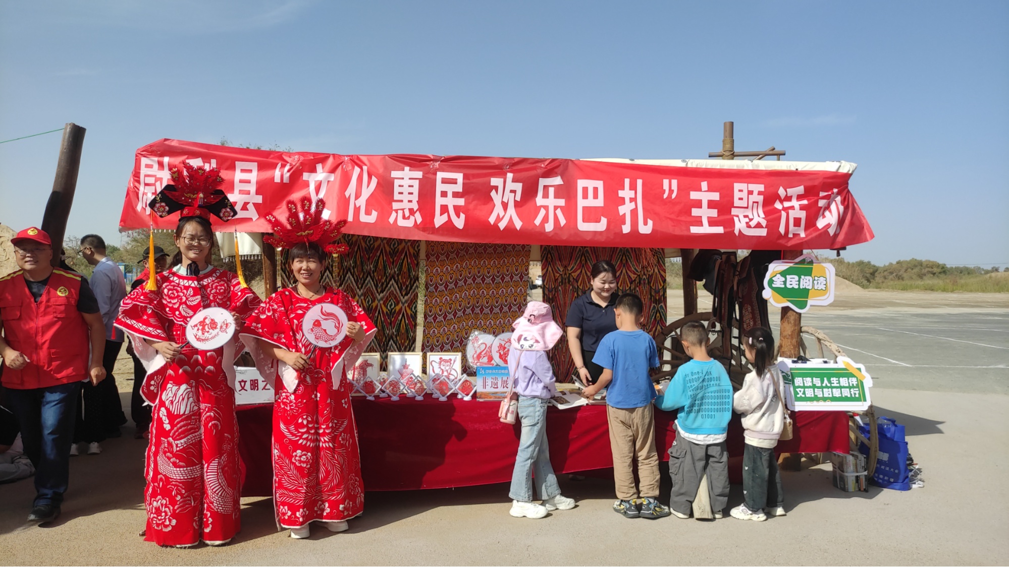 据了解,本次活动由尉犁县委宣传部牵头,文旅局、团结镇、罗布人村寨景区管委会、新华书店等单位共同举办。活动涵盖非遗展示、阅读推广、公益服务等多种形式,展出剪纸作品、移风易俗、社科普及等宣传文化产品。