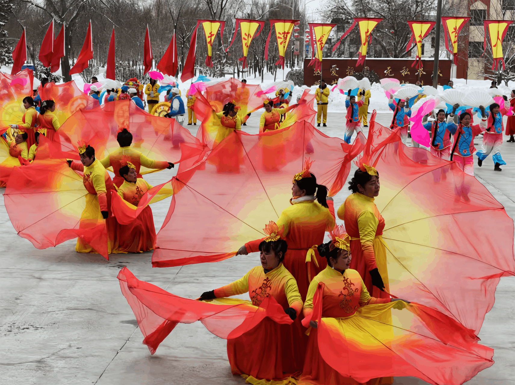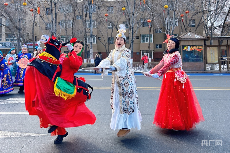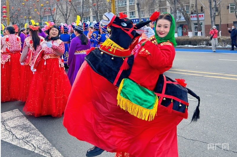 精河县社火活动现场,参演人员活力十足 (央广网发 迪娜尔·奴尔巴克特 摄)
