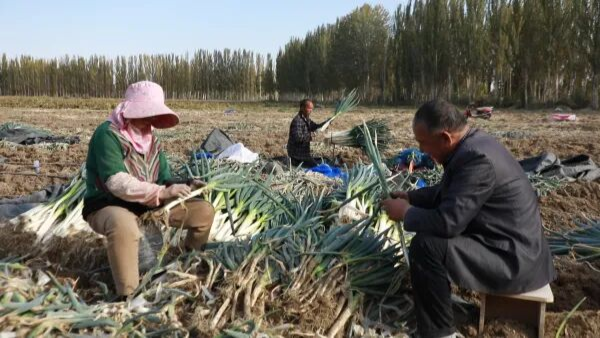 金秋十月,新疆和田市吉亚乡欧吞其尧勒村的大葱种植基地迎来丰收季。一垄垄绿油油的铁杆大葱长势喜人,田间地头一派繁忙兴旺的景象,在丰收中奏响“乡村振兴曲”。
