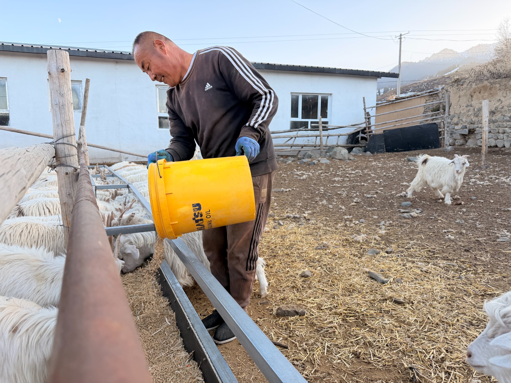 与传统养殖方式不同,马良林注重科学管理和生态养殖。他采用“半舍饲+半放牧”相结合的方式,白天将山羊放至附近草场自由觅食,晚上则统一归圈,既保证了山羊的运动量,也提升了肉质。同时,他还积极学习现代养殖技术,定期做好防疫工作,在饲料中添加中草药,增强羊群抵抗力,确保健康生长。