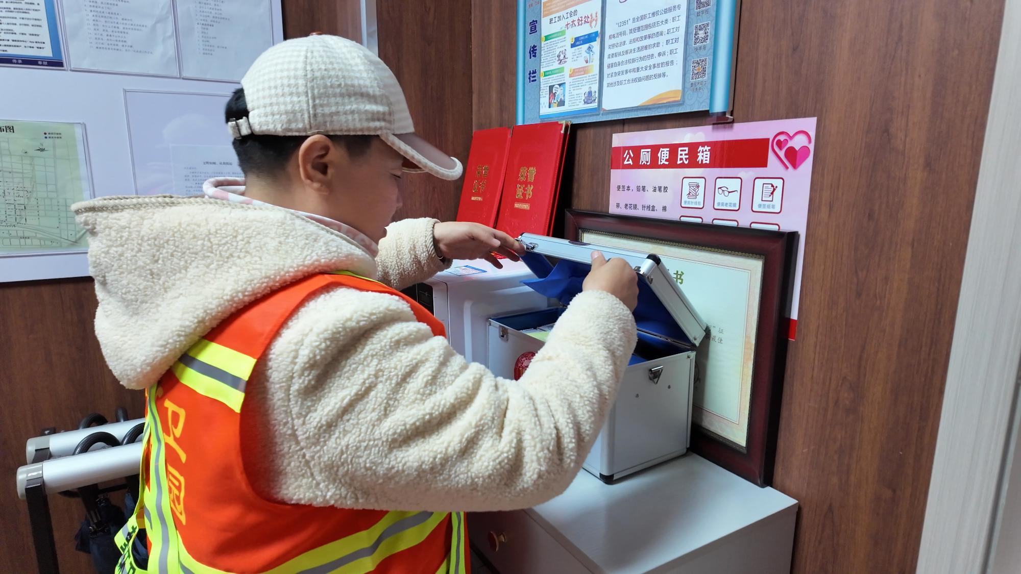 户外劳动者使用便民箱 (李颖 摄)