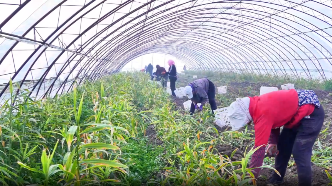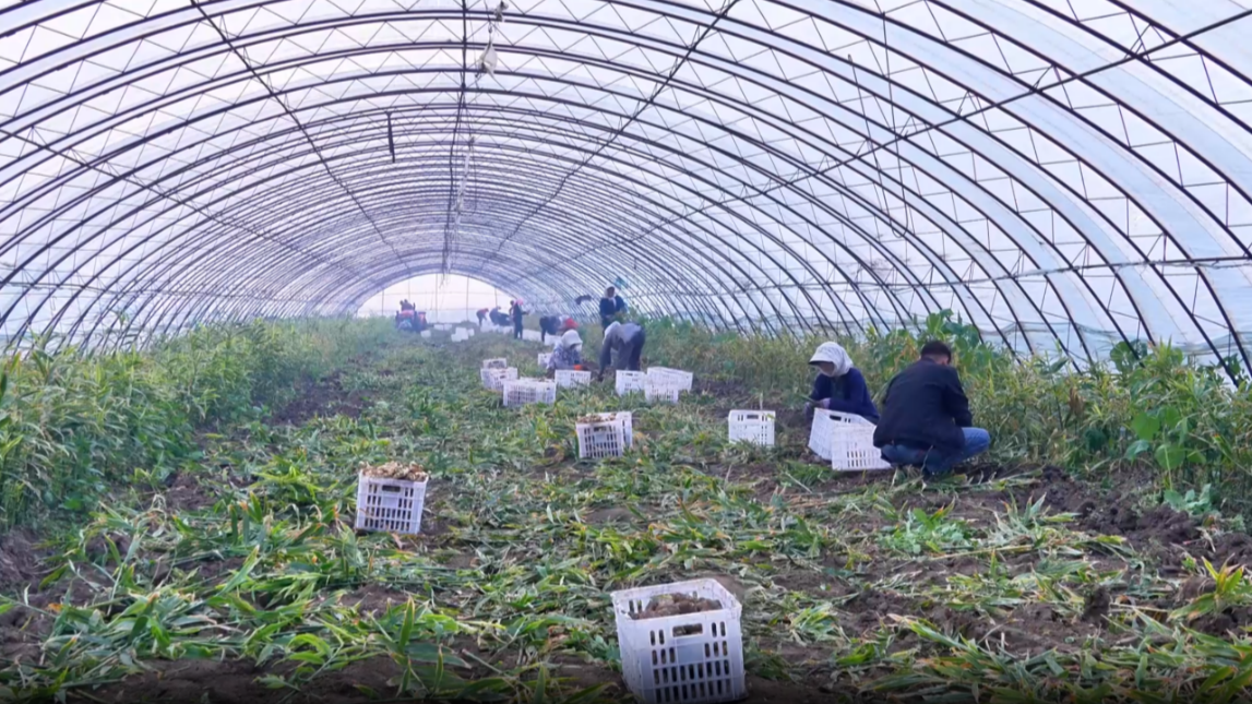 近年来,新疆塔城地区沙湾市金沟河镇积极发展大棚特色农业,为农民开辟了新的增收之路。眼下,该镇大棚生姜喜获丰收,农户们正忙碌地进行采收,共享丰收的喜悦。