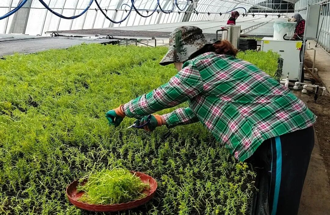 村民在大棚培育花卉 (王腊梅 摄)