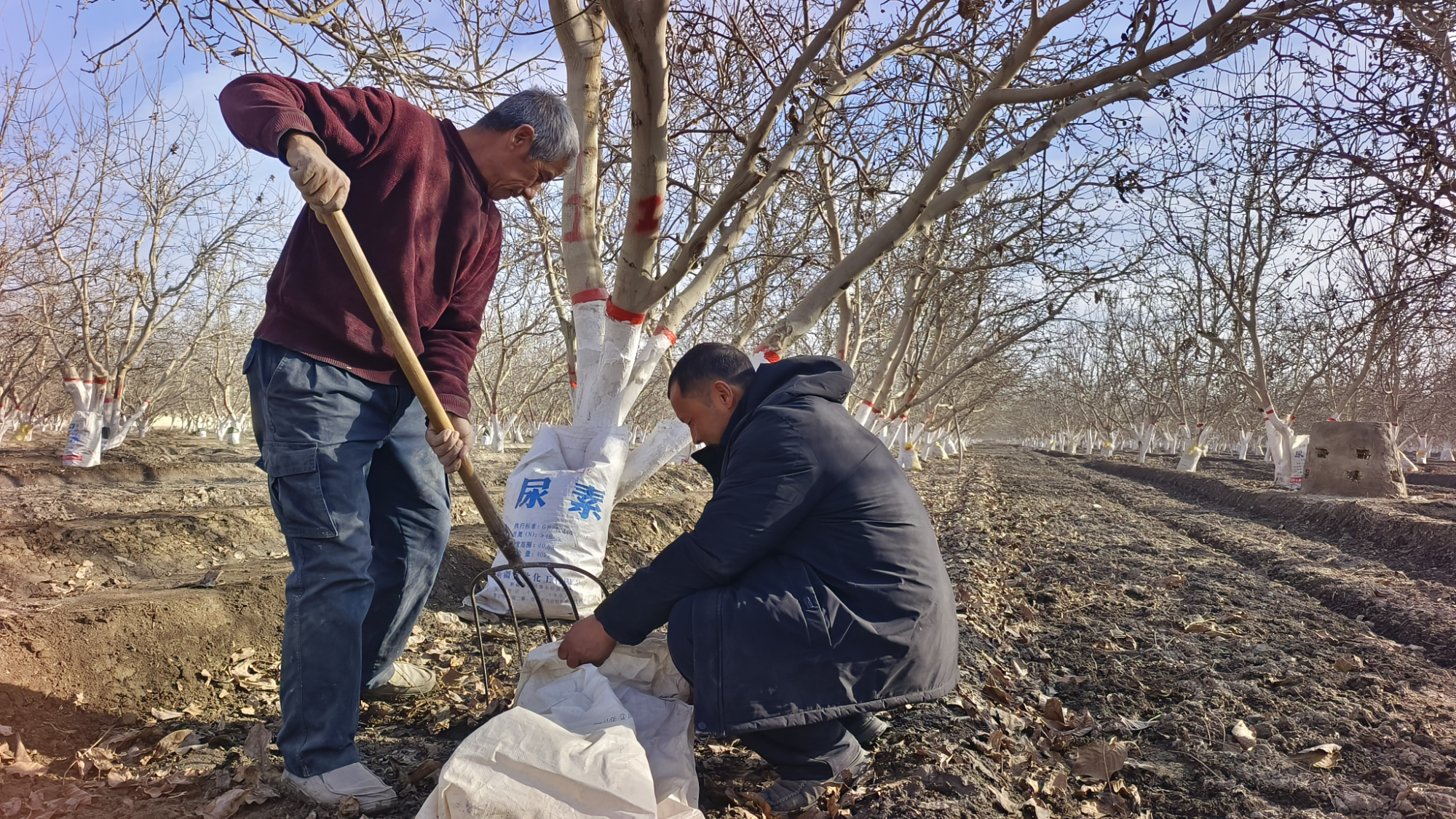 目前,阿克萨克马热勒乡结果期核桃园的冬季管护工作已全面铺开,果农们以“冬闲变冬忙”的实干劲头,用精细化管护为核桃树保驾护航,让这一“致富树”持续成为乡村振兴的硬“核”力量。(来源:巴楚县融媒体中心)