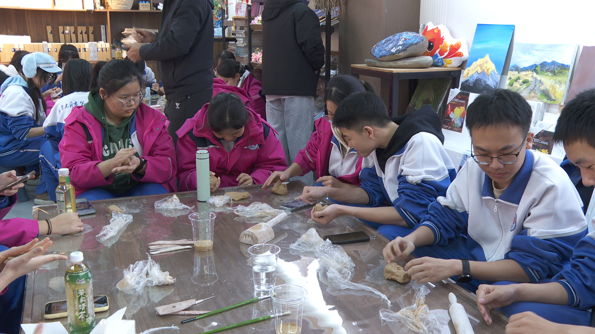 学生们在小分子画家村体验了做陶艺制作 (贺雅馨 摄)
