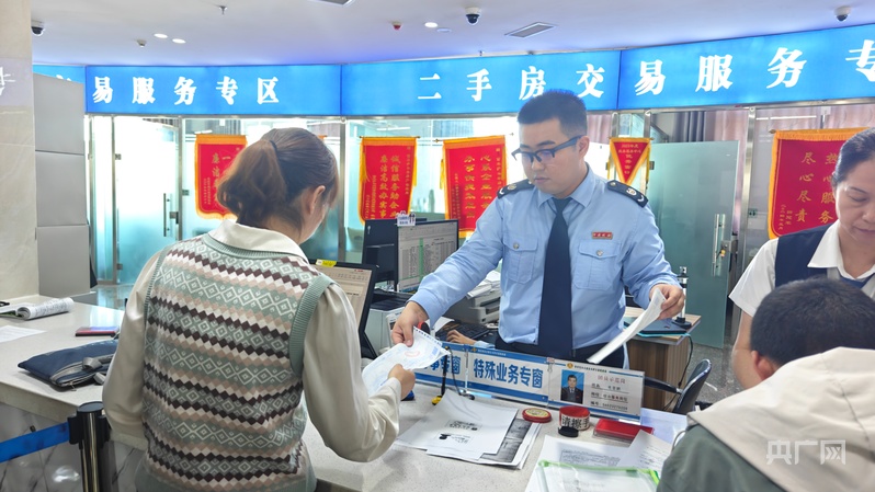 工作人员正在为居民办理二手房业务 (央广网记者郭璁悦 摄)