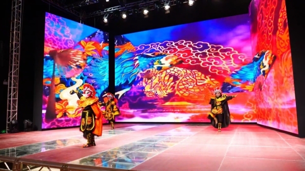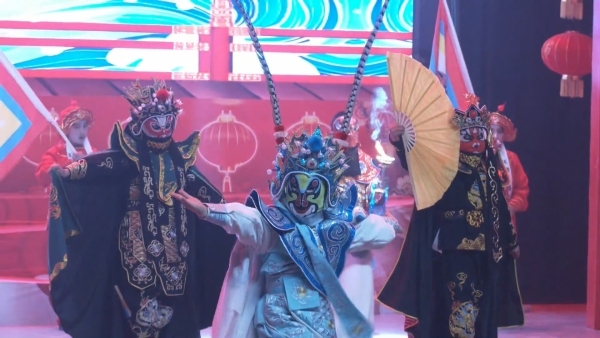 2025年1月24日,多来提巴格乡第一小学戏曲社团的孩子在巴楚县2025年春节联欢晚会《戏曲大拜年》节目中表演变脸 (巴楚县融媒体中心供图)