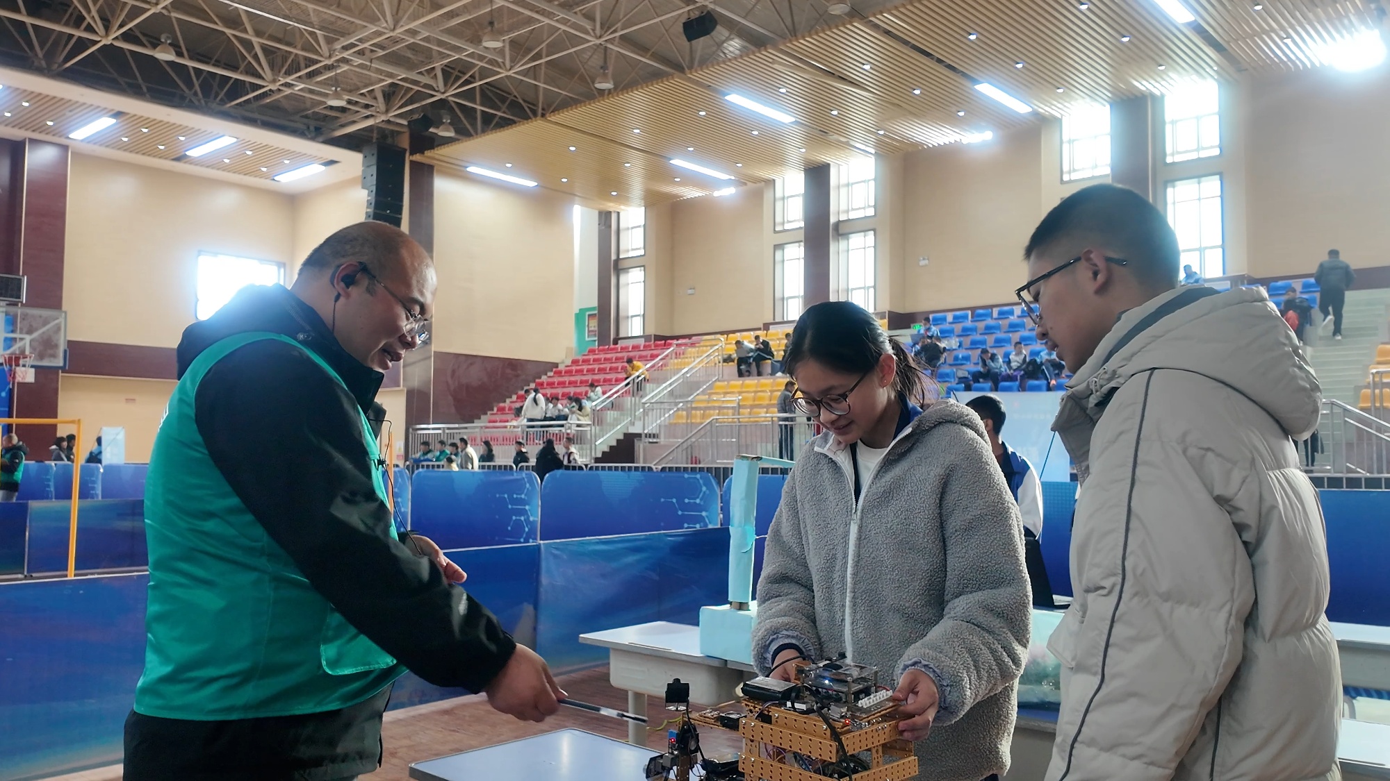 总决赛设置8大核心赛项,覆盖小学、初中、高中及教师群体,兼顾科技实践与知识比拼。其中,“逐梦蓝天,智控未来”无人机竞技赛、“编程筑梦,智驾未来”机器人任务赛等赛事,聚焦人工智能与前沿科技,选手们自带设备现场竞技,在操控与编程中展现扎实的科技素养;“科技改变生活方式”科技创新设计赛、“争当小实验家”科学实验赛鼓励选手结合生活实际开展创新,将科学知识转化为实践成果;高中组“新时代的科技”辩论大赛围绕科技发展热点展开思辨,培养学生逻辑思维与表达能力;中小学教师教育科技成果展示交流活动同步开展,为教师搭建科技教育经验分享平台。赛场上,墨玉县参赛学生精神饱满,在各赛项中展现出良好的科学素养与创新能力,成为赛事中一道亮眼的风景线。