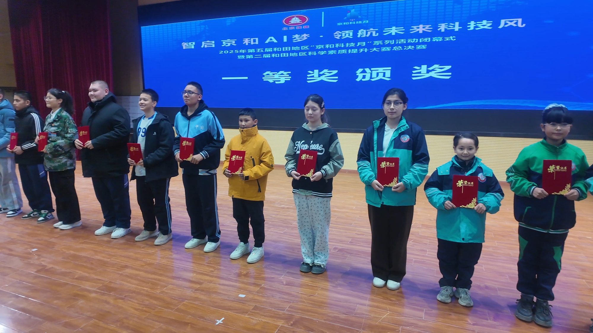 总决赛结束后,在墨玉县第五中学举行2025年第五届和田地区“京和科技月”系列活动闭幕式,对在总决赛中表现优异的学生代表授予一二三等奖,以表彰其在科技探索中的努力与突破;同时,为肯定学校在赛事组织与科技教育推进中的积极作用,墨玉县有11所学校被授予“优秀组织单位奖”。