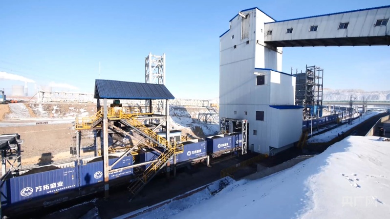 新疆准东露天煤矿环线装车点,一列煤运列车正有序进行煤炭装车 (央广网发 陈乾 摄)