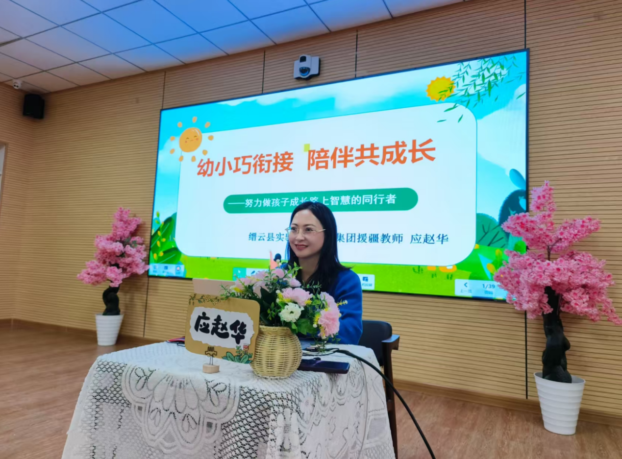 近日,丽水援疆“石榴籽”公益课堂第十八期专题家长讲座《陪伴不缺席,用爱助成长》在新疆新和县丽水幼儿园举行。本次讲座由丽水援疆教师、新和县丽水小学德育主任应赵华主讲,面向幼儿园大班家长,深入探讨幼小衔接阶段的关键问题与科学陪伴策略。
