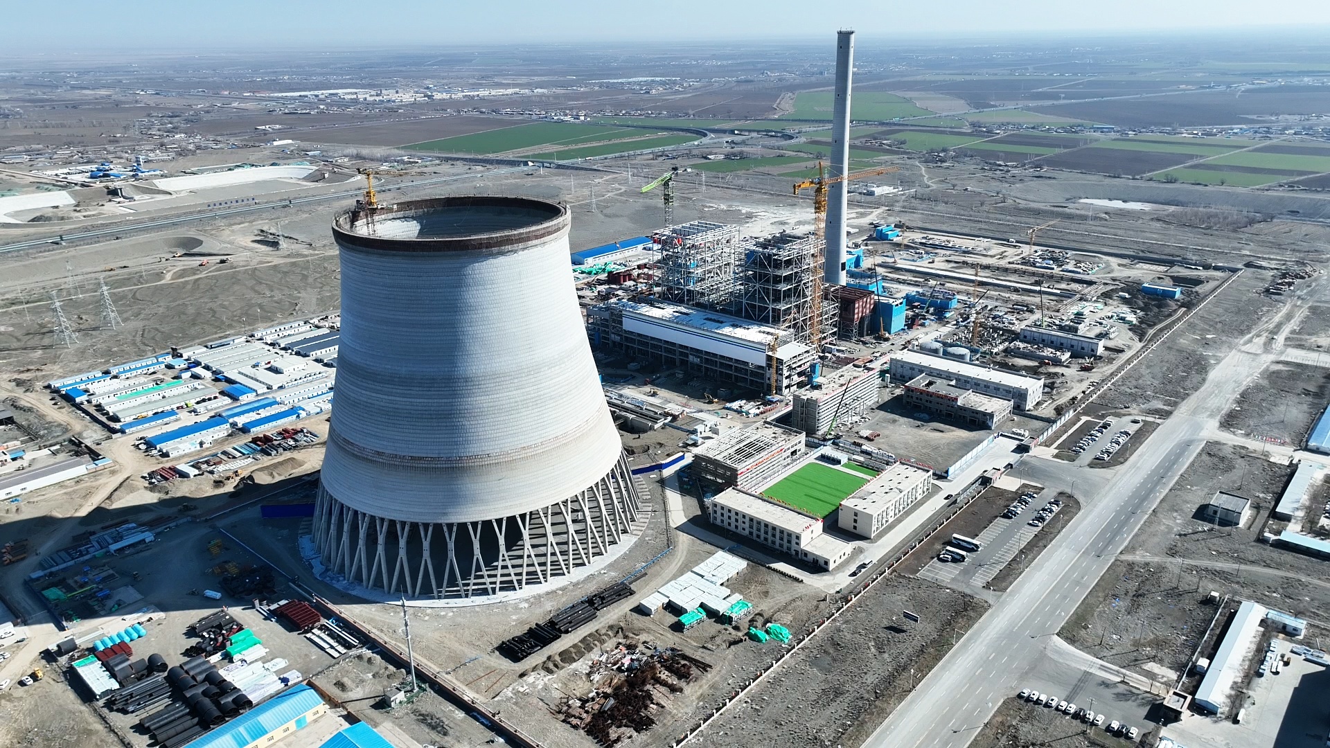 鸟瞰吉木萨尔县2×350MW热电联产项目施工现场 (张锐 摄)