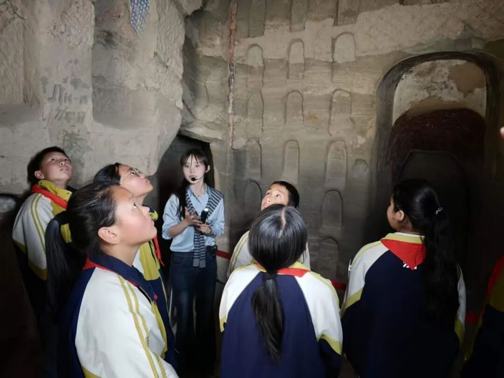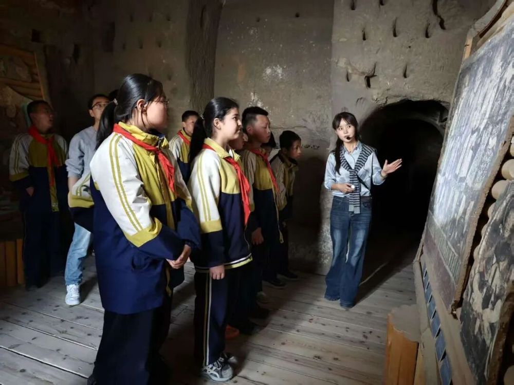 4月2日,讲解员为学生细致讲解千年壁画背后的故事 (尹玲 摄)