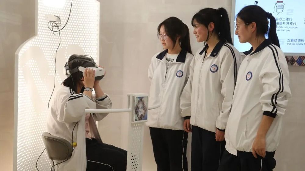 研学团成员通过VR设备沉浸式感受石窟文化 (高娇娇 摄)
